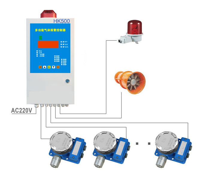 KB200多功能气体报警控制器由报警监控器和气体探测器等构成,可混合配接多种气体探测器,安装布网方便,实现4路、6路,8路 16路或32路和总线485多点物理量的测量、显示和公共报警控制。当环境中探测气体浓度达到或超过预置报警值时,报警器立即发出声光报警,以提醒及早采取安全措施,并驱动排风、控制系统,防止发生爆炸、火灾、中毒事故,从而保障安全生产。可使用于石油探采、油气输送、炼油、冶金、电厂、化工、油库、液化气站、矿井、隧道、坑道、地下管线等需要防火、防爆、防中毒的场所进行气体安全检测报警。毒的场所进行气体安全检测报警。